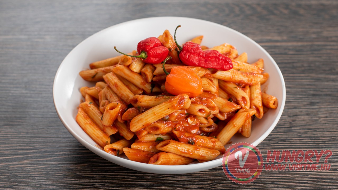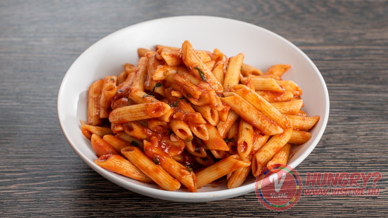 (penne, bazsalikomos paradicsom mártás, trappista sajt)