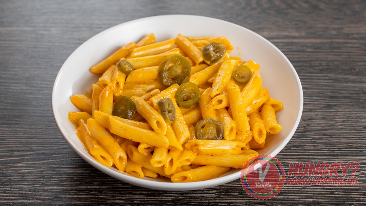 (penne, sajtmártás, petrezselyem, jalapeno, trappista sajt)